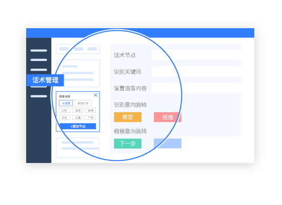可視化竹簡法話術配置,可實現話術在線配置,自由跳轉,所見即所得,2-4小時輕松完成上線;